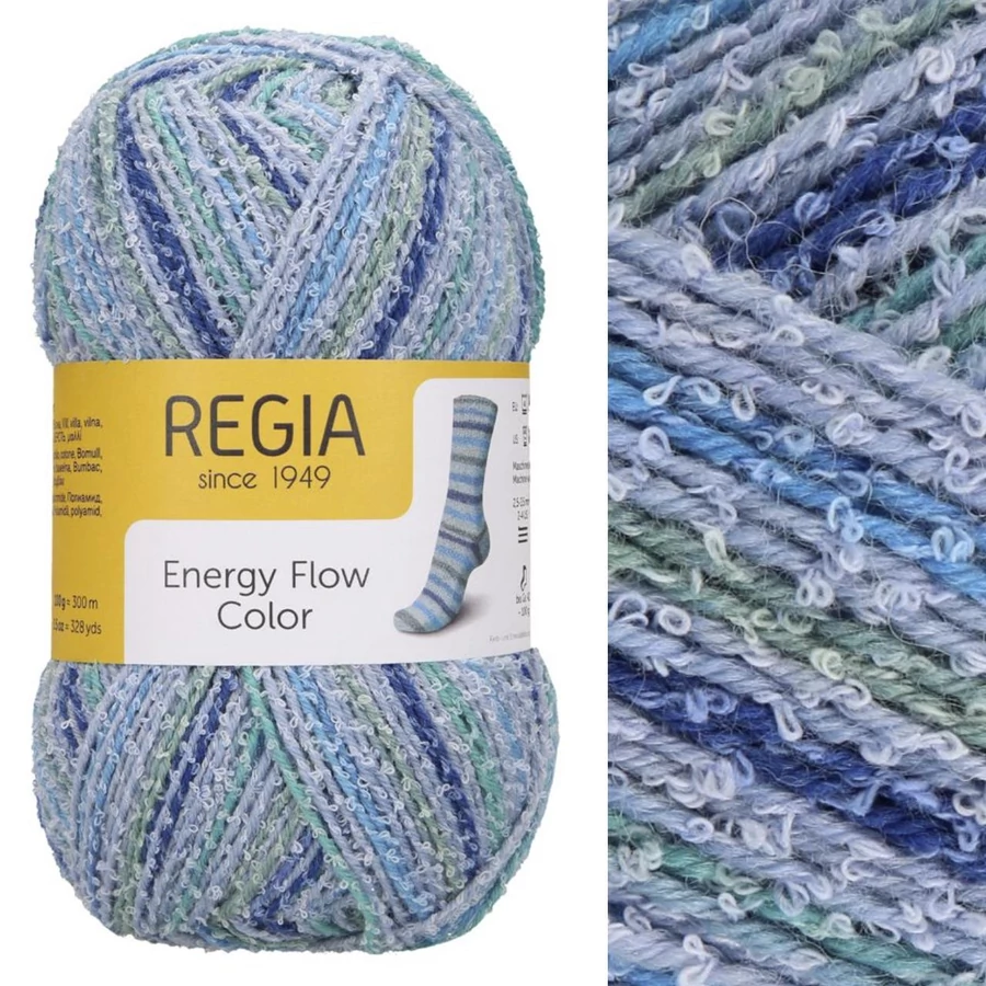 Kötéspróba: 24 x 32 Egyedülálló buklés texturája van a fonalnak, így egy különleges zoknifonal. Sportos, meleg, zoknikat köthetünk belőle. A 6 szálas Regia fonalakhoz áll közela vastagsága, az alapján lehet méretezni a zoknikat. Egy 100g-os gombolyagból egy pár zokni köthető, 42-es méretig. |